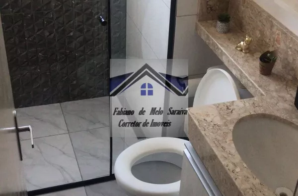 banheiro lindo com gabinete, blindex e espelho.